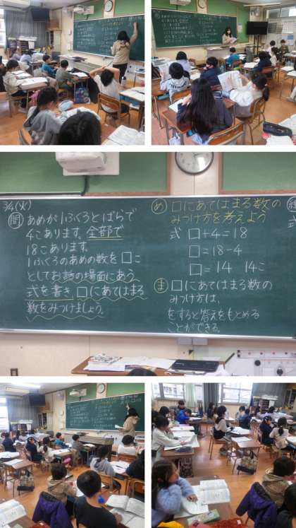 算数科の時間は、□にあてはまる数の見つけ方を考えました。