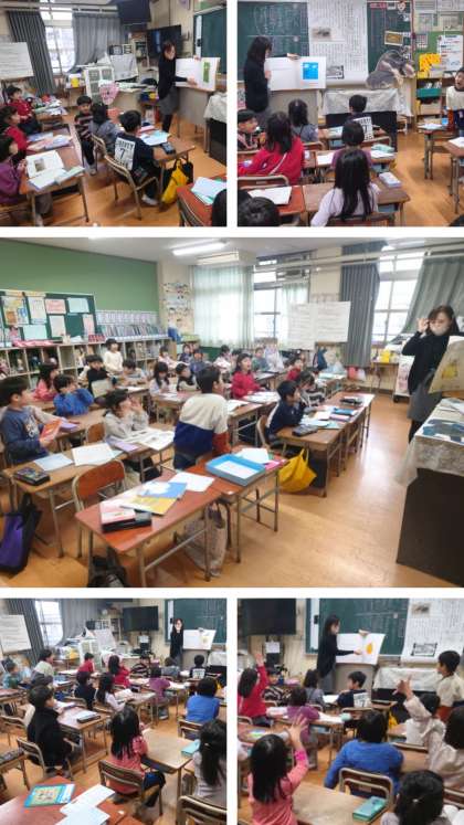 1年生は、英語の紙芝居を担任が子どもたちに読み聞かせをしています。