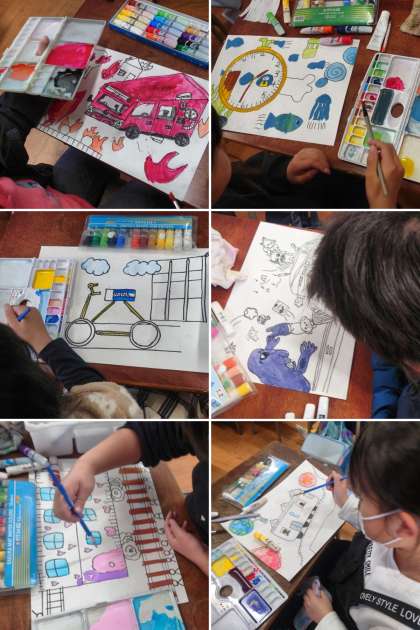 図工科の時間は、「世界にたった1つしかない乗り物」を想像して絵に表しました。