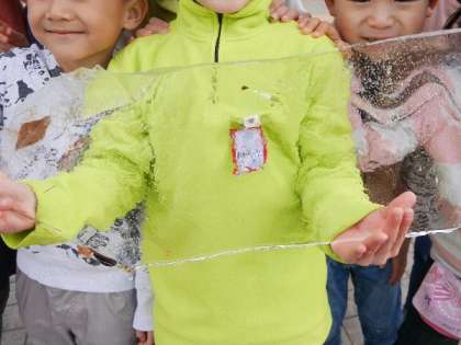 朝、玄関にいてると、1年生が「大きな氷がとれたよ」と持ってきてくれました。今日はとても寒いですね。でも元気よく運動に勉強にがんばろうね。