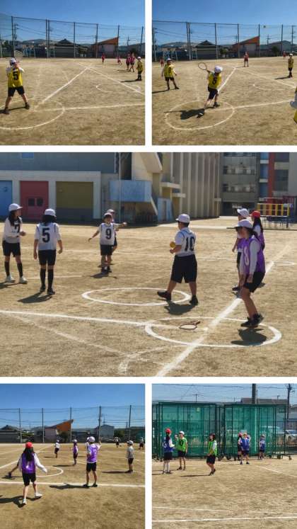 体育科の時間は、ラケットベースボールの学習をしています。
