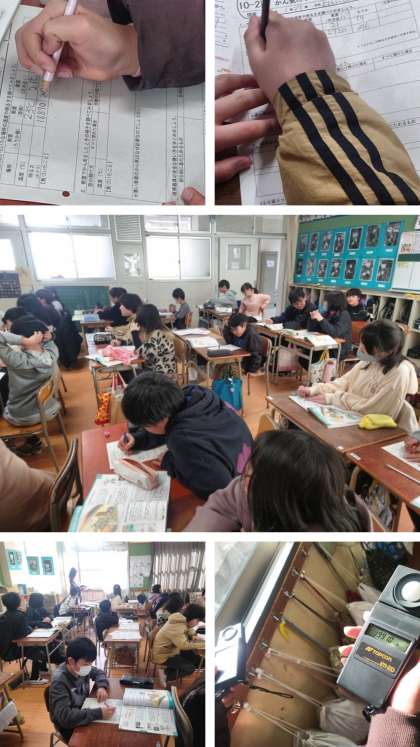 家庭科の時間は、室内の温度や明るさと換気について調べました。