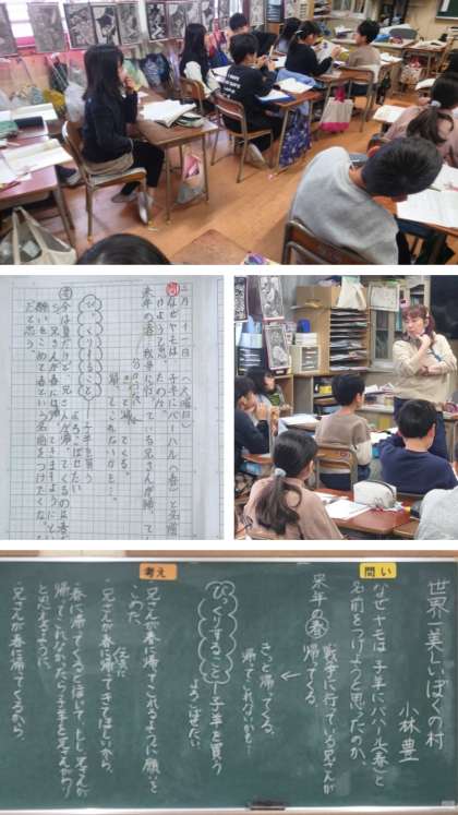 国語科では、教科書の教材文「世界一美しいぼくの村」の学習をしています。