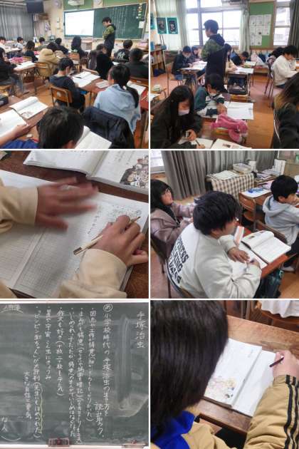 今日は、手塚治虫が小学生のときのできごとから、治虫の生き方を読み取り、ノートにまとめました。