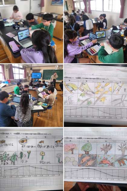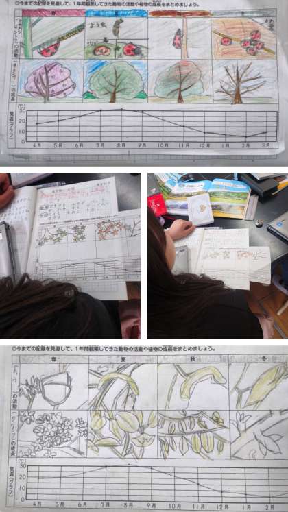 理科の時間は、植物や動物のようすは1年間でどのように変わってきたのか、ノートにまとめました。