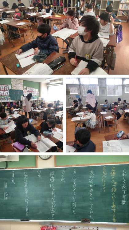 国語科の時間は、「主語」「述語」と「くわしく表す言葉」を見分ける学習をしました。