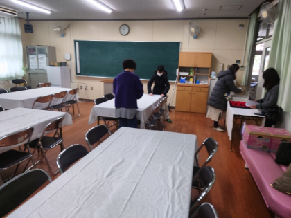 お休みの日にも関わらず、PTA役員のみなさまが卒業式の来賓控室の設営をしてくださっています。