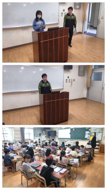 今年度最後の児童朝会は、各教室と多目的室をオンラインで結んで児童朝会を行いました。
