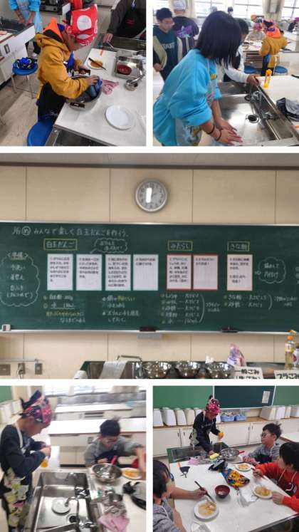 家庭科の調理実習として、みんなで楽しく白玉だんごを作りました。