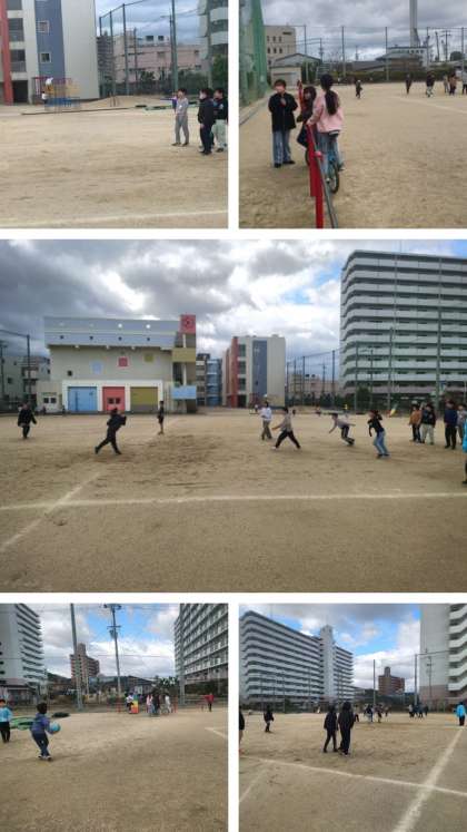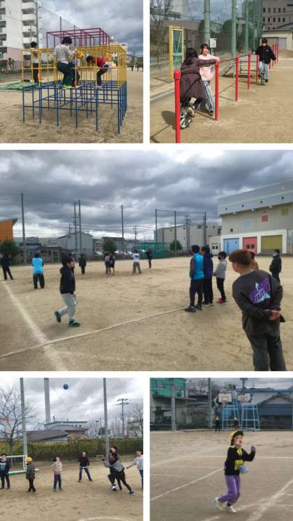 空気は冷たいですが、子どもたちが元気に外遊びしています。