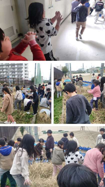 次の2年生のために、学習園の草ぬきをして、畑をきれいにしました。