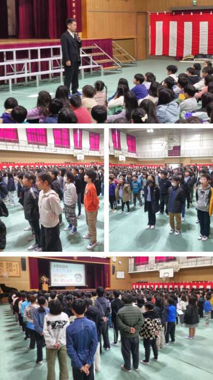 講話の後、春休みのくらしについて担当から話をしました。