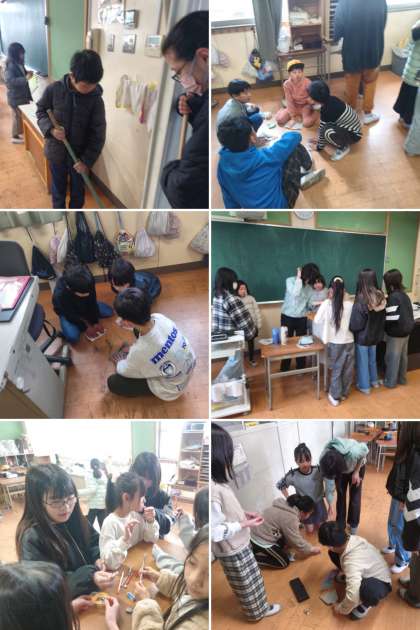 午前中、各学級で学習をしたり、お楽しみ会をしたり、通知表を渡したり、春休みの生活について話をしたり、大そうじをしたりしてすごしました。
