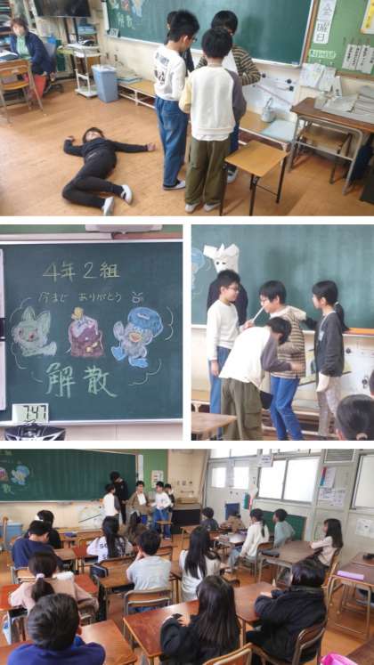午前中、各学級で学習をしたり、お楽しみ会をしたり、通知表を渡したり、春休みの生活について話をしたり、大そうじをしたりしてすごしました。