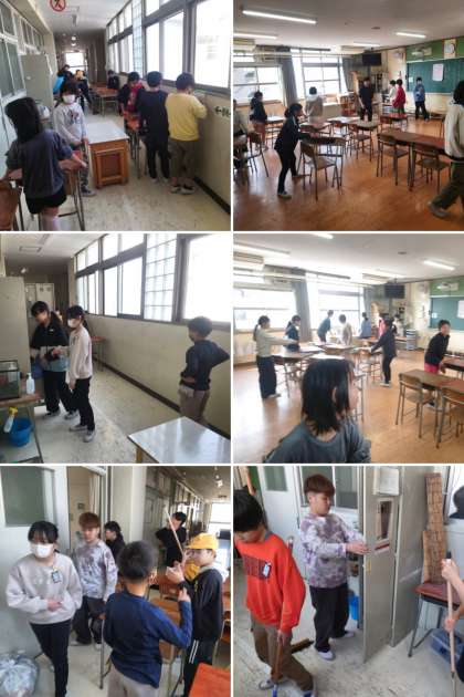 午前中は、各学級で学習をしたり、お楽しみ会をしたり、通知表を渡したり、春休みの生活について話をしたり、大そうじをしたりしてすごしました。
