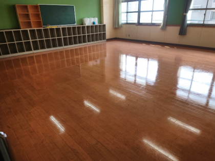業者にワックスをかけてもらい、各教室の床がピカピカになりました!