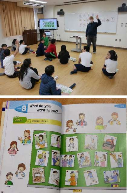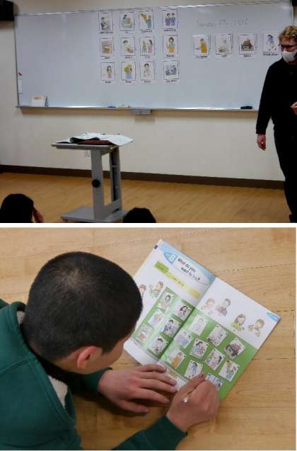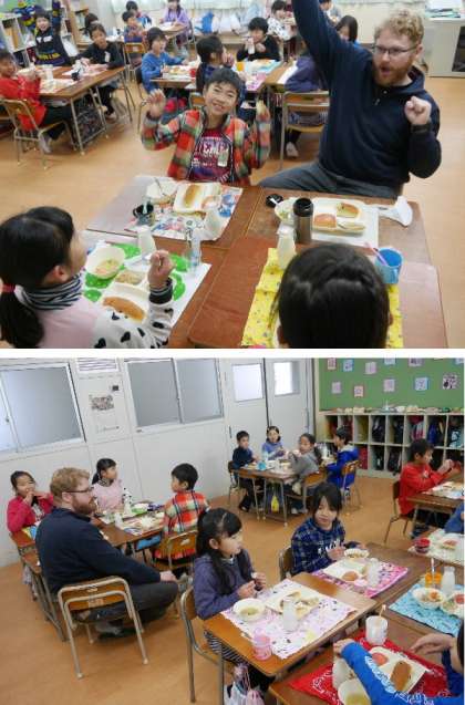 中学校からメイソン先生がきてくれました。給食は3年生で一緒に食べました。6年生の英語授業では、将来になりたい夢を英語で言いました。