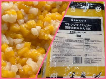 「フルーツゼリー」は、ダイスカット状のみかんゼリーと和なし(カット缶)を合わせた一品です。
