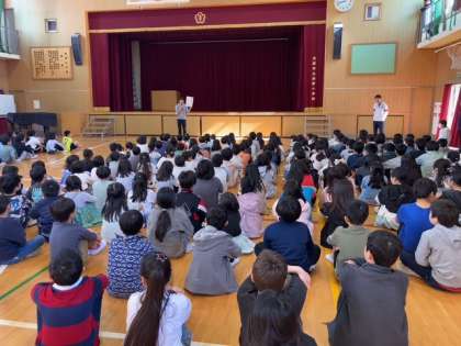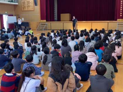 校長先生から、目で話を聞く大切さや、焼野地域にお住まいで、絵を描かれている方の話がありました。今年も素敵な作品を提供していただいています。また、ボールの使い方等についてもお知らせがありました。