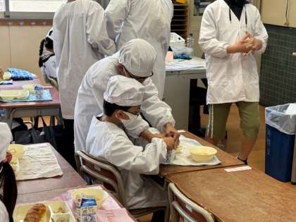 先週は、6年生がすべで用意してくれた給食。今日からは、自分たちも少しずつ給食の準備や片付けを始めます。