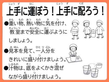 明日の献立は、きんぴらちらし・きざみのり(袋)・五目汁・ちまきです。