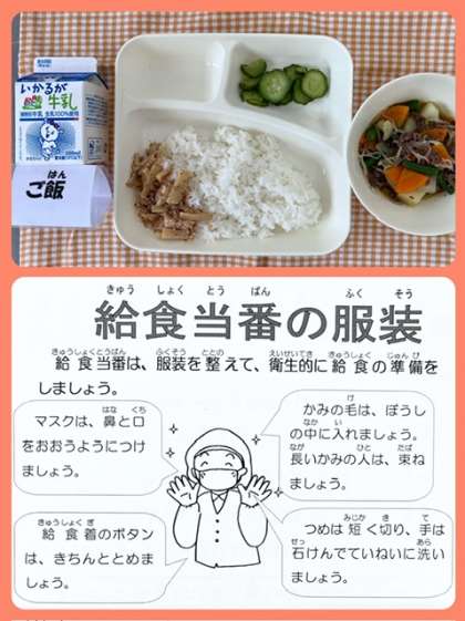 今日の献立は、肉じゃが・きゅうりの酢のもの・ごまかかいため・ごはん・牛乳でした。