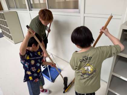 体力テストで協力して仲良くなれたのもあってか、昨日までの掃除に比べて、さらに協力して掃除ができていました。