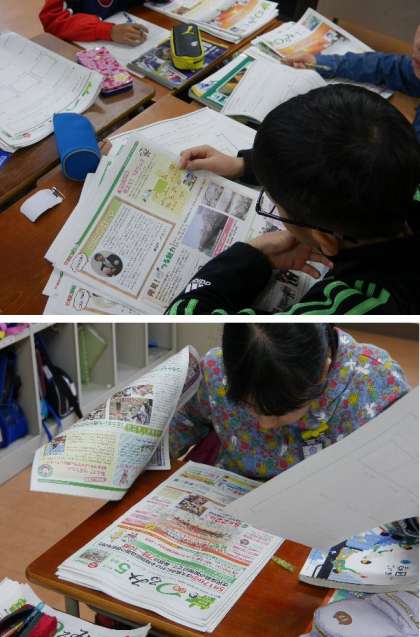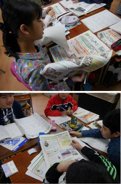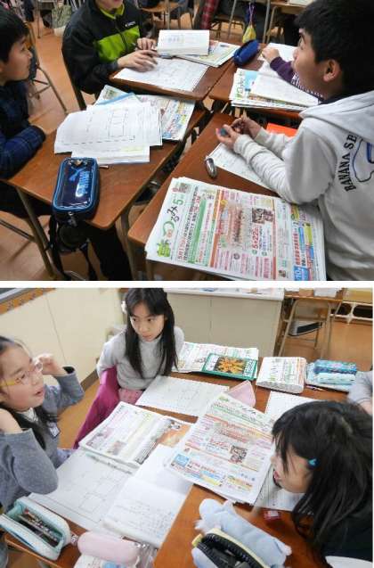 6年国語科では、町の未来を考えよう「町の幸福論」についてと取り組んでいます。鶴見区役所から区の広報紙「広報つるみ」を1年間分とりよせて、区政の取り組みなどについて調べています。どんなことが課題で考えることができるのか、班で考えています。