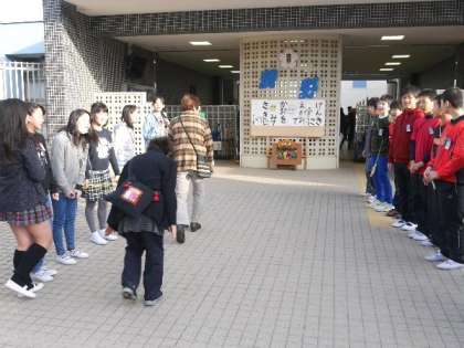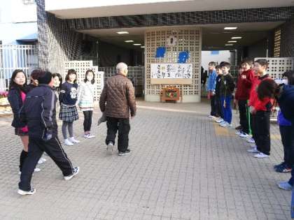 1年生で昔あそびにたくさんの地域の方々が焼野小学校にきていただきました。6年生が正門であいさつしてくれていました。