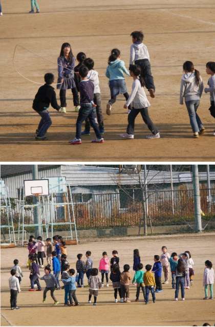なわとび集会では各学級で大縄跳びの記録にチャレンジです。目標を決めてがんばっています。