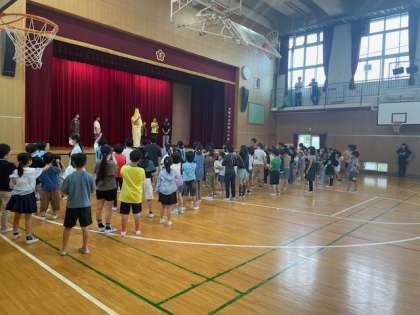 今日は、集会委員会の担当児童とじゃんけん大会。最後まで勝ち残ったグループは「赤 そー2班」でした! その後、「じゃんけんの神様」が出てきて・・・・。楽しい時間を過ごすことができました。神様に勝って、「ラッキー」を手に入れられましたか?