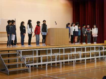 今日の全校朝会では、児童会の環境委員会から、おそうじピカピカ大作戦の成績のよかった学級に賞状がわたされました。今月の生活目標は「身のまわりをきれいにしよう」です。校長先生かせ「目に見えない心を磨くには、見えるもののを磨こう」というお話をしました。心をしっかり育てなければ成長はありません。日々の清掃をしっかりがんばりましょう。
