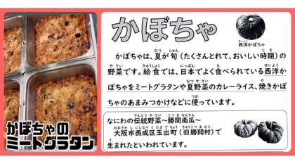 「かぼちゃのミートグラタン」は、牛ひき肉、豚ひき肉、旬のかぼちゃなどを使用したケチャップ味のグラタンです。