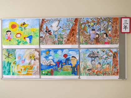 3年の掲示板に先日の作品展の作品が掲示されました。