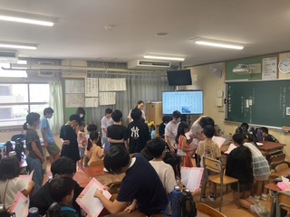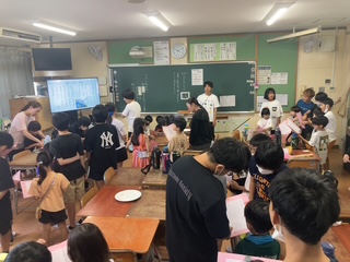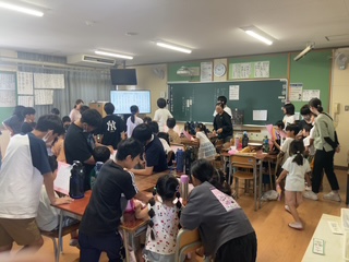 ジャガイモを食べた後は、6年生は校歌を1年生に教えていました。6年生が1年生の横で一緒に歌うなどして練習した後、クラスみんなで校歌を歌いました。1年生のみなさん、これから校歌を歌えるようになってくださいね。