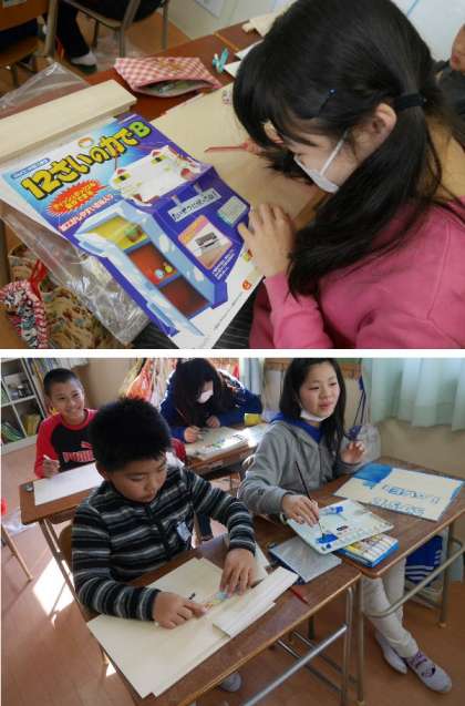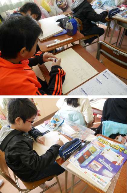 いよいよ最後の作品づくりです。板材や角材を電動のこぎりで切って作品を作ります。ティッシュボックスや小物用たななど、いろいろなアイデアがうかびますね。さあどんなものができるかな。家で便利に使えるものがいいですね。