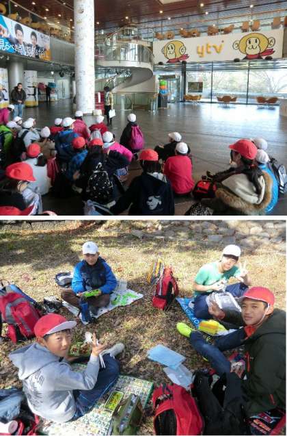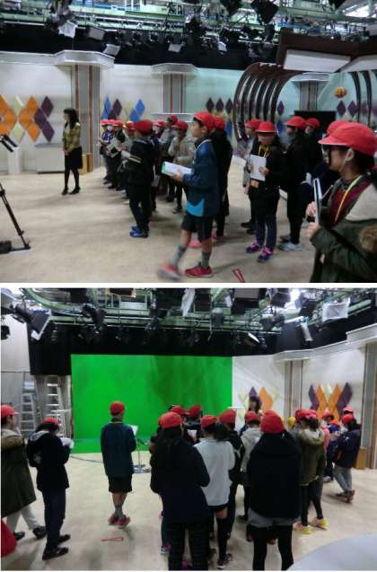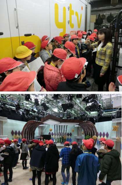 5年校外学習で読売テレビを見学しました。取材をする車やスタジオを見学しました。天井にはすごい数の照明ついていてびっくりしました。