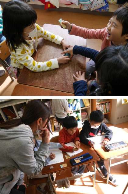 来週の月曜日に、保育所から小学校に体験に来ます。4月には新1年生で入学してきます。そしてもうすぐ2年生になりますね楽しみですね。その新1年生の体験入学にくるので、説明の練習をしていました。文も自分たちで考えています。一緒に新1年生と遊ぶための説明を一生懸命考えていました。ぼうずめくりの練習もしていますね。