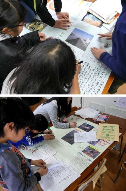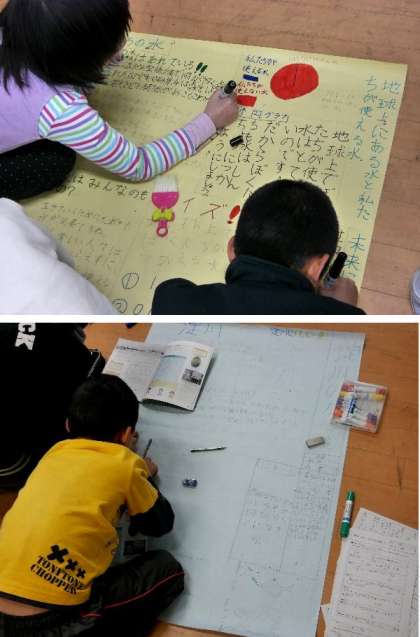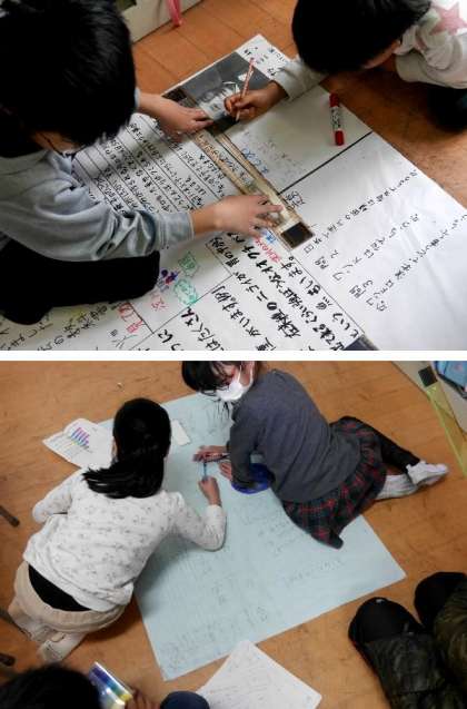 4年生が調べたことを壁新聞にまとめています。だいぶできあがってきましたね。
