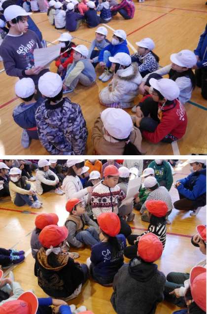 2月に行う予定だった「たてわり遊び」が延期になり、今日の20分休みで行います。その打ち合わせを児童集会でおこないました。6年リーダから遊ぶ場所、ルールなどの説明がありました。卒業間近の6年生はとても頼もしく感じられます。いいファミリーになりましたね。