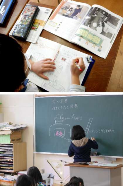 3年の社会科では、「今にのこる昔とくらしのうつりかわり」について学習していました。ごはんを炊く「羽かま」の絵を描いていました。校外学習で行った「くらしの今昔館」にありましたね。