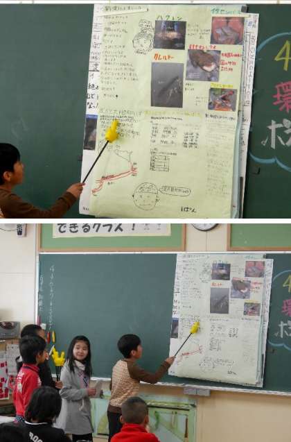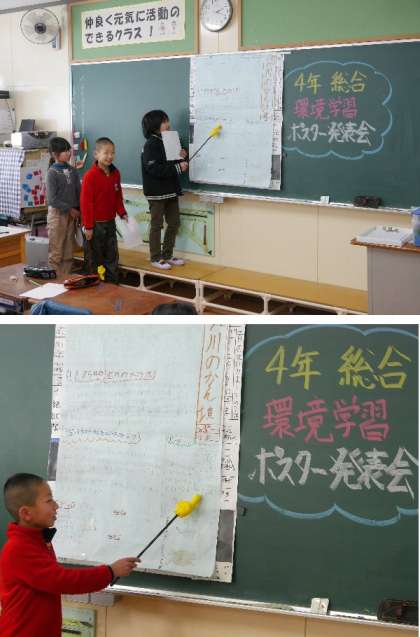 ずっと班でポスターづくりに取り組んできたものの発表会をおこなっていました。淀川の環境、新淀川などについての発表がありました。発表する人も聞く人もしっかりした態度でがんばっていました。