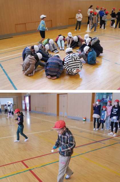 延期になった「たてわり遊び」が今日ありました。とてもいい天気だったので気持ちがよかったですね。体育館では、ハンカチ落としやピン玉運びなんかの遊びもおこなっていました。とてもアットホームで1年生ものびのびと遊んでいました。