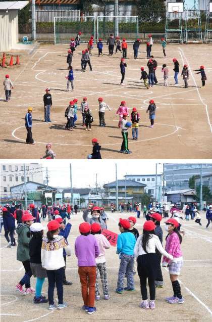 延期になっていた「たてわり遊び」が行われました。運動場の区分けされたところで遊びます。いろいろなゲームを6年が中心となって1年から6年まで楽しく遊びます。