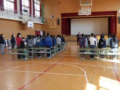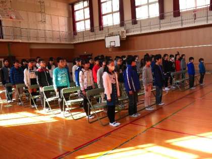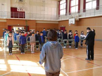 講堂で5年生が卒業式の練習をおこなっていました。卒業式には6年生と5年生が出席します。6年生はまたインフルエンザが流行ってきて心配です。