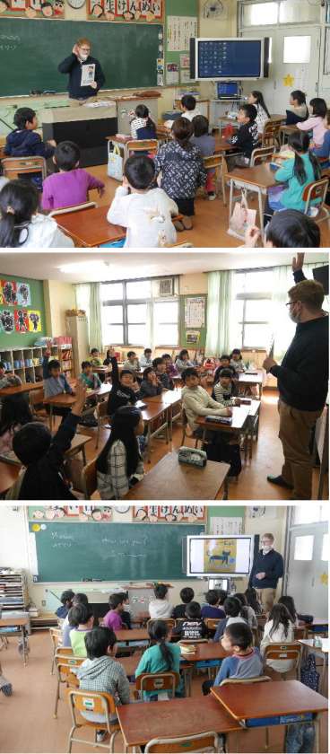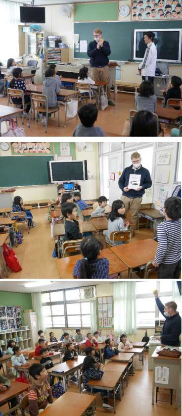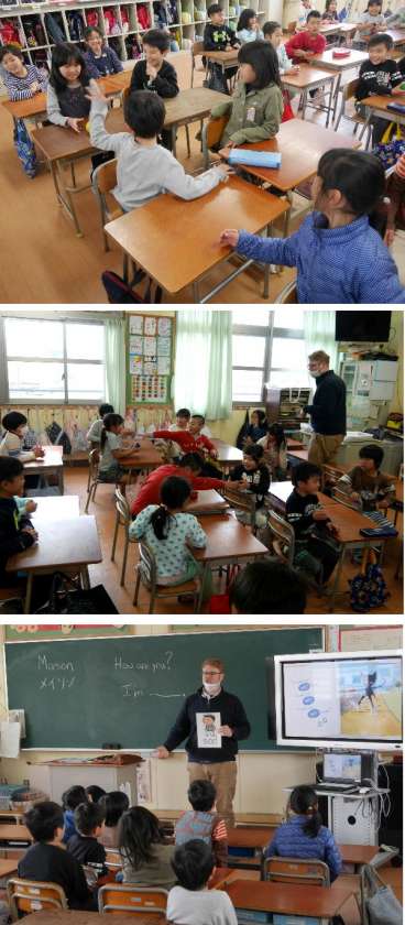 2年生の教室に中学校のメイソン先生がきてくれて英語の学習をおこないました。ボールをまわしたり、楽しみながら英語の発音ができるよう学習しました。