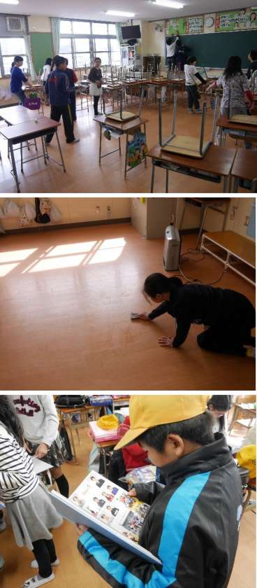 6年生は午後から教室の整備と清掃をおこないました。最後の学級活動で、卒業アルバムをもらいました。小学校での最後の通知表をもらい下校しました。