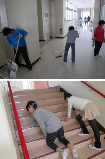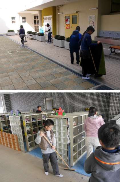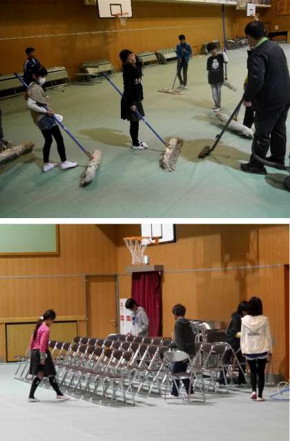 授業がおわって明日の卒業式の準備を5年生が手伝ってくれました。校舎の内外の清掃や講堂の会場準備をていねいにしてくれました。明日はいい卒業式になるようによろしくお願いします。