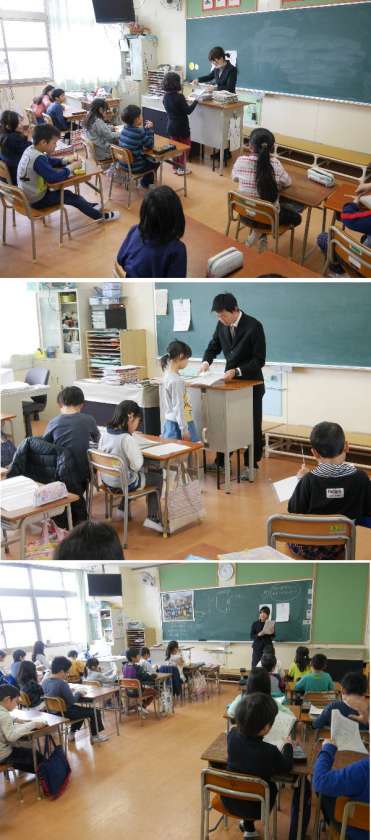 修了式のあと各学級で通知表を受け取りました。春休みの注意をうけたり、持ち帰るものを整理して下校しました。