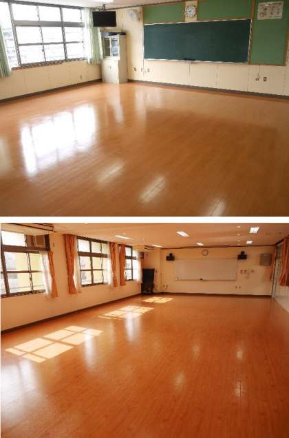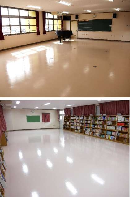 各教室の床のワックスがけをおこないました。ピカピカですね。4月になってみんなが登校してくるのを待っていますよ。